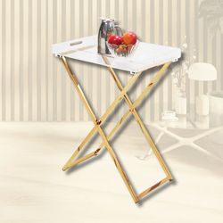 Elegant Modern Design Opvouwbare Messing-Plated Dienblad Tafel Voor Thuis Of Buitenshuis Gebruik Duurzaam Metalen Meubilair