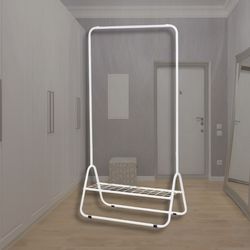 Ruimtebesparend Nieuw Ontwerp Gepoedercoate Kledingstandaard Met Één Laag Voor Beperkte Opslag