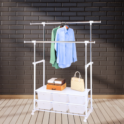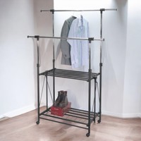 Abnehmbare Double Bar Kleider ständer Rack Pulver beschichtetes Boden regal Stauraum Platz sparend 33KGS Kapazität für Wohnzimmers chuh