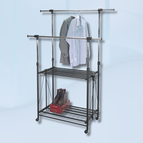 Palto askılık portmanto ve haddeleme tekerlekleri ile dayanıklı çift kutuplu ayakkabı rafı